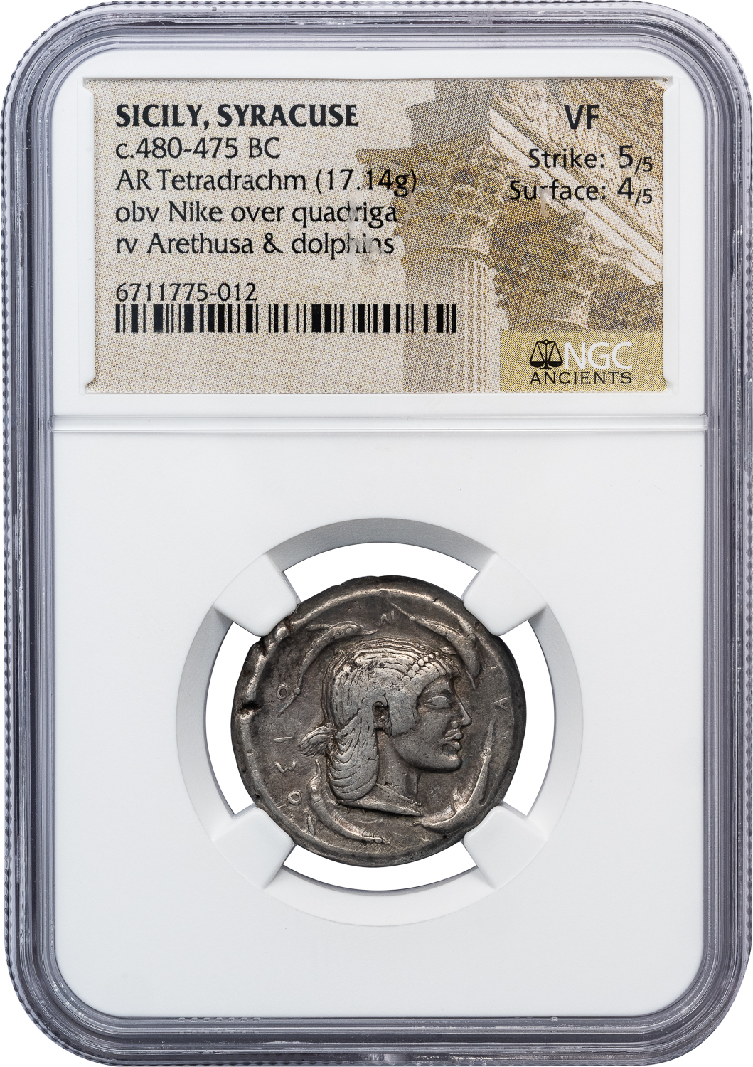 SYRACUSE SILVER TETRADRACHM – 480-475 BC ISSUE EX CNG 1997 – VF NGC GRADED GREEK SICILY COIN (Inv. 20530)