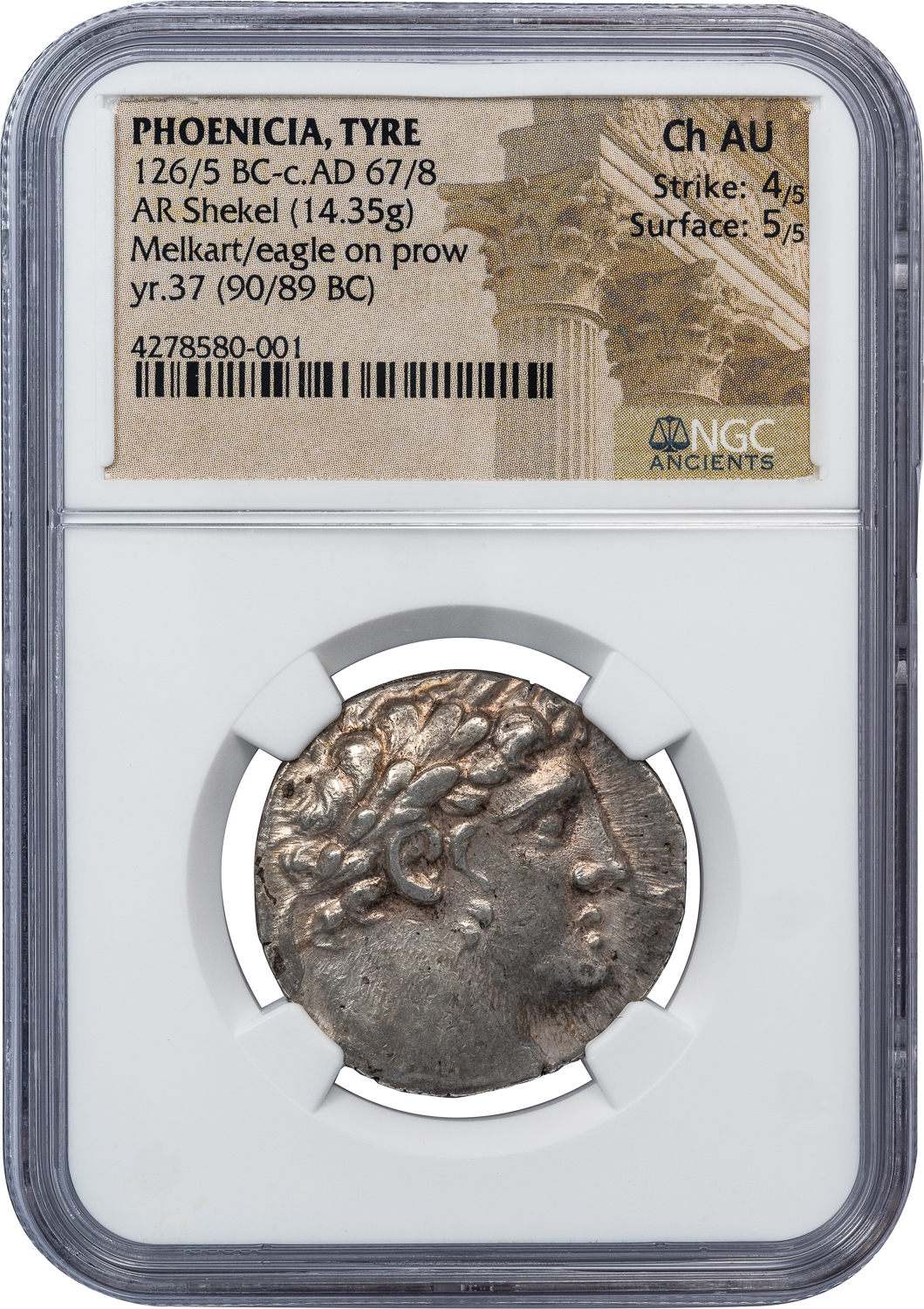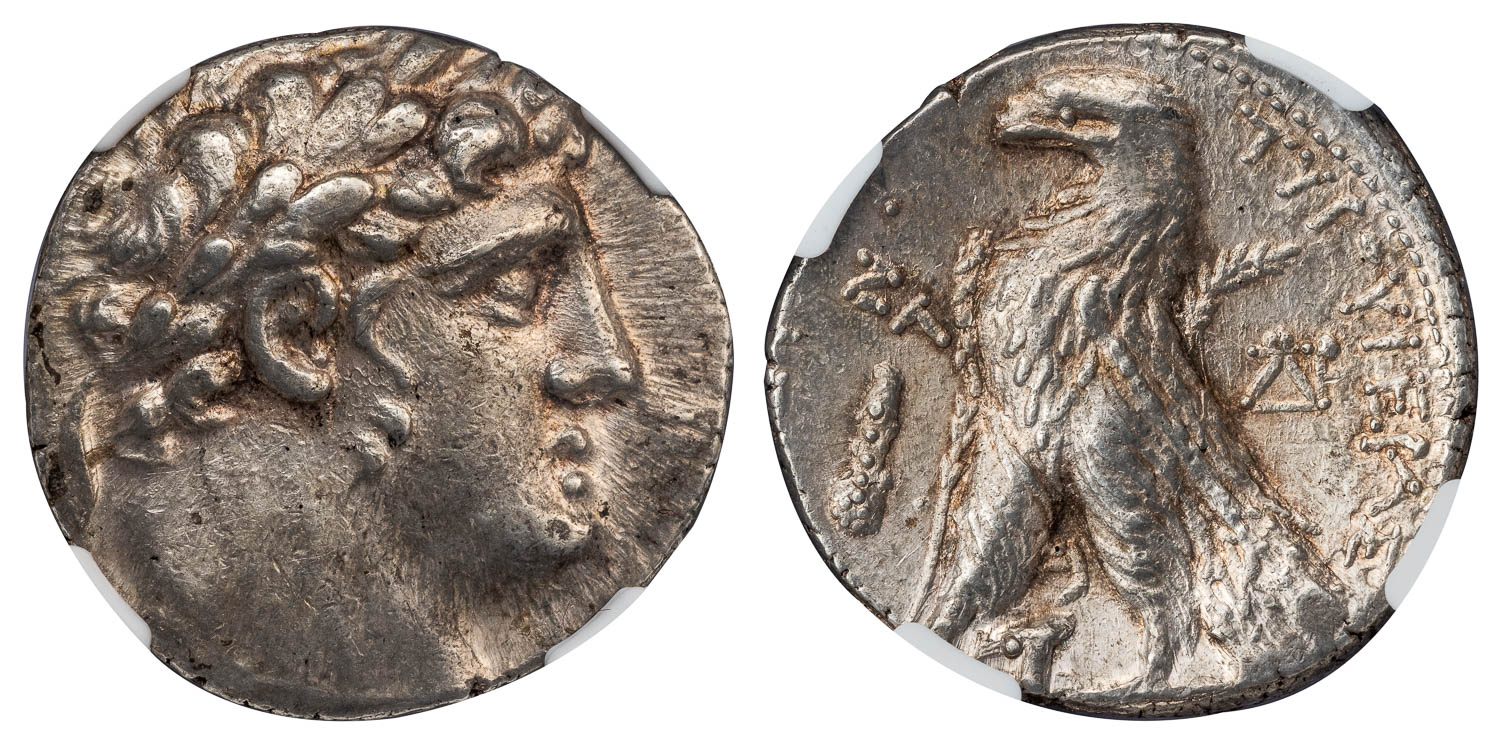 TYRE SILVER SHEKEL – 90/89 BC ISSUE – CHOICE AU NGC GRADED GREEK PHOENICIA BIBLICAL COIN (Inv. 20921)