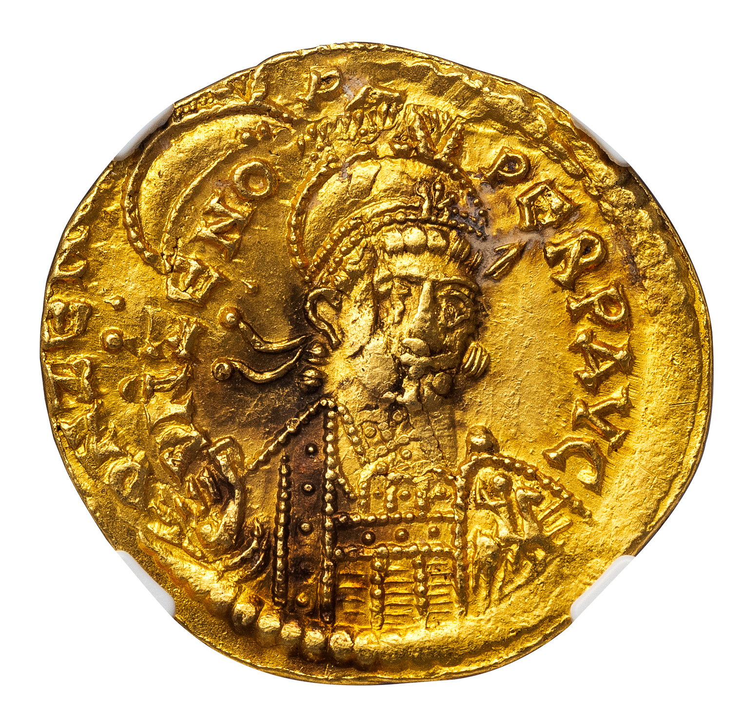 ZENO GOLD SOLIDUS – PROMINENT DOUBLE STRIKE ANCIENT ERROR – MINT STATE NGC GRADED EASTERN ROMAN EMPIRE COIN (Inv. 20940)